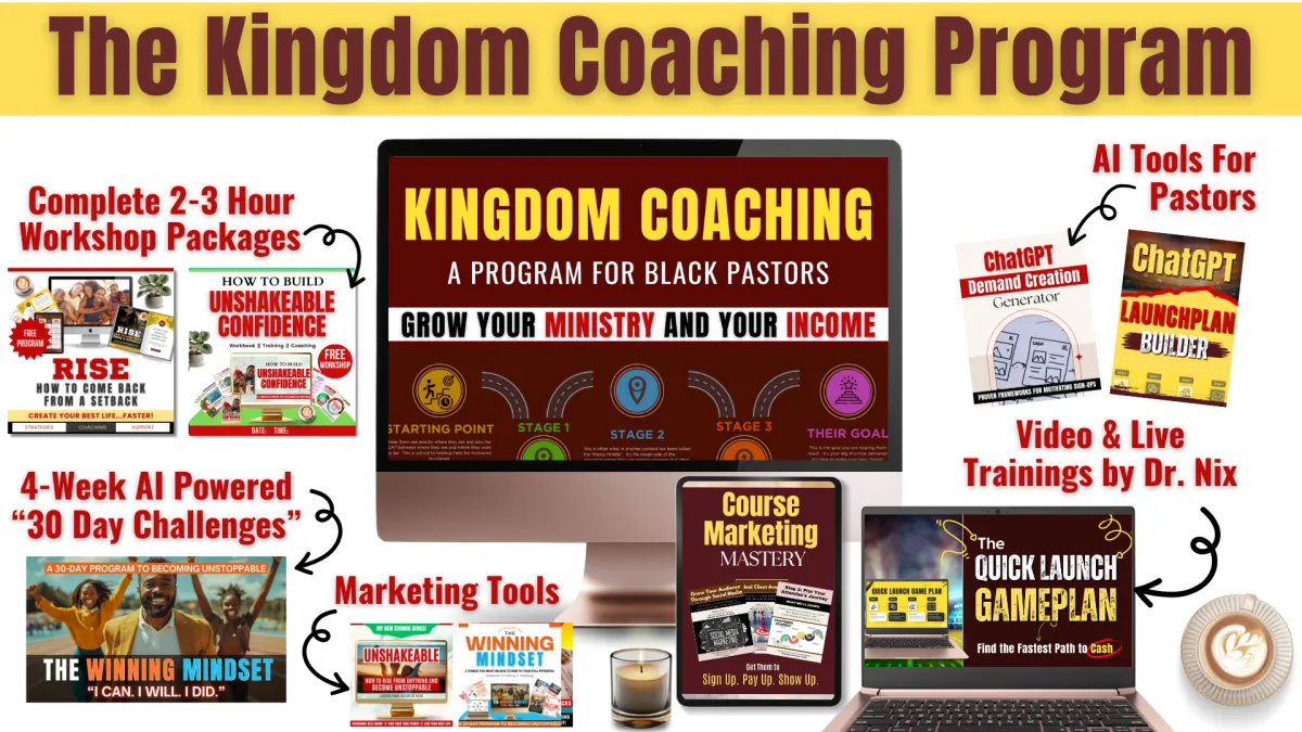 By using the done-for-you coaching workshops and programs we provide (plus the ones we help you create), you can reach more people, attract serious church members, and create a stable income stream—without sacrificing your calling but rather expanding your territory to reach more people outside the 4 walls.